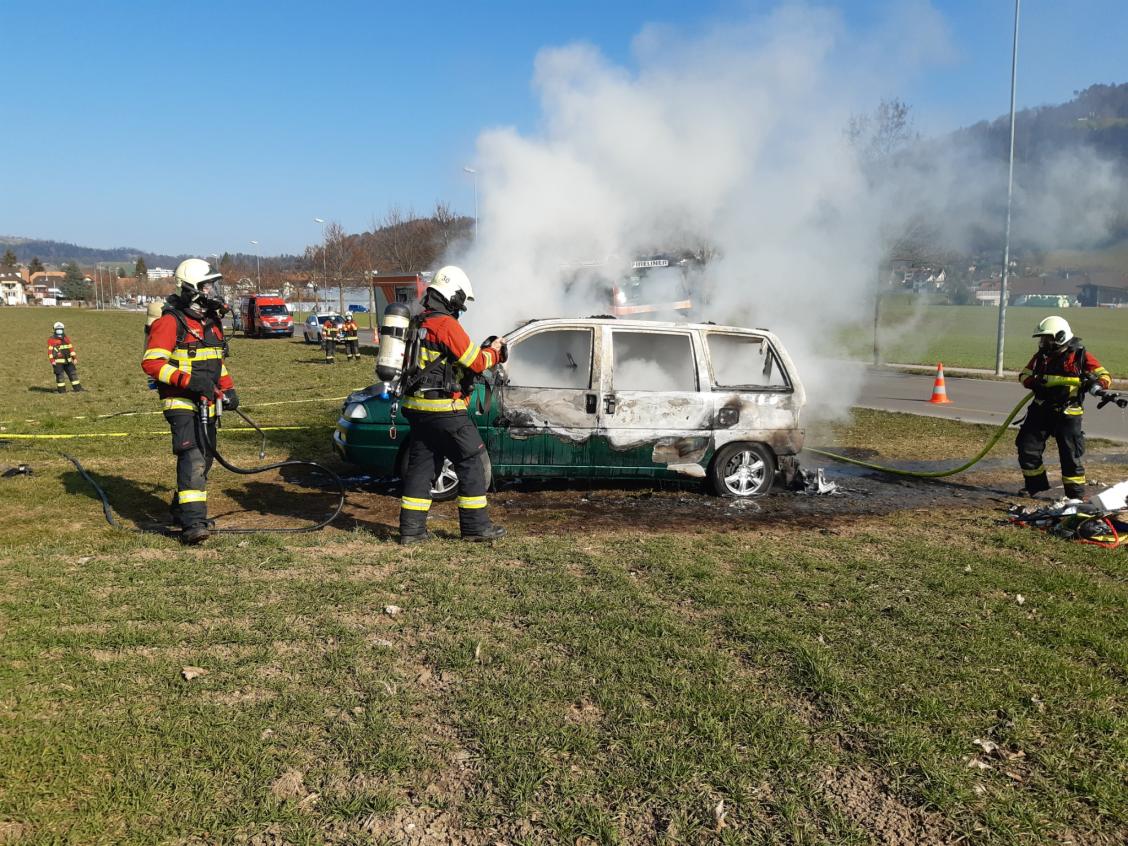 Fahrzeug gelöscht und Verkehrsregelung auf der Stockhornstrasse sichergestellt.
