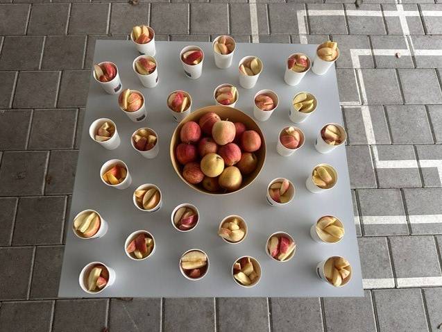 Nebst dem "normalen" Apfel gibt es Apfelschnitzchen, Apfelschlangen und halbe Äpfel.
