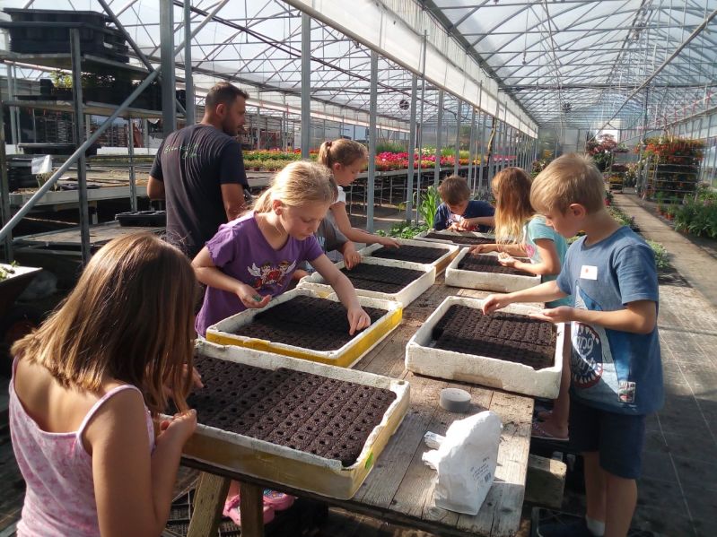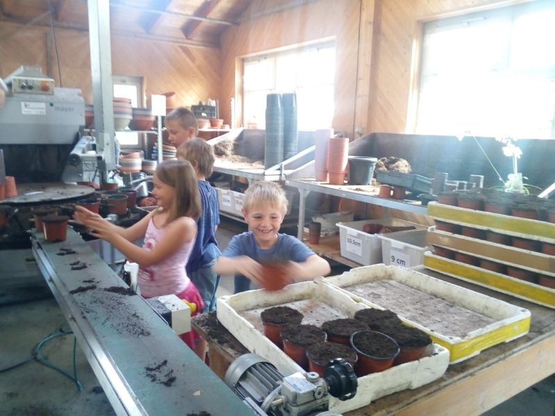 Die Kinder konnten Fenchel aussäen, die Topfmaschine bedienen, Margeriten einpflanzen und Basilikum und Petersilie pikieren.