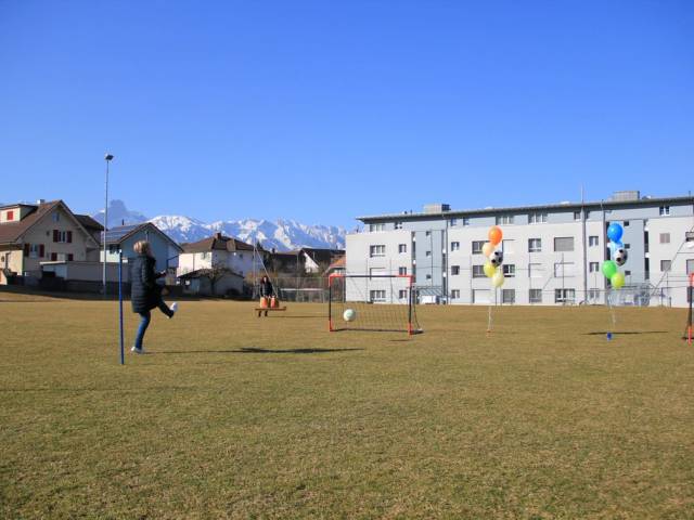 Die Idee bestand schon längere Zeit, nun konnte sie in die Tat umgesetzt werden. Um die Fussballtore auch gleich gebührend einzuweihen, hatten alle anwesenden Schülerinnen und Schüler die Möglichkeit, einen Fussball durch einen kleinen Slalom zu dribbeln und einen Treffer in eines der Tore zu versuchen. Von frenetischen Rufen angefeuert, versuchten die 180 anwesenden Schülerinnen und Schüler ihr Glück. Zum Dank wurden sie mit grossem Jubel und mit einem Laugenbrötli in Fussball-Form belohnt.