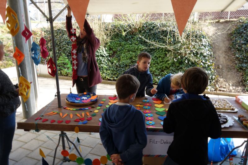 An vier Werkmorgen, von je 8.00 bis 10.00 Uhr, gestalteten und bastelten die Kinder voller Freude kreative Produkte zum Verkauf an den Marktständen. Gearbeitet wurde in altersgemischten Gruppen, so kam ein schöner und spannender Austausch zwischen allen Erlen Kindern (Kindergarten und Schule) zustande. Durch das Arbeiten in einer anderen Klassenzusammensetzung konnten auch neue Erfahrungen mit anderen Kindern gemacht werden.