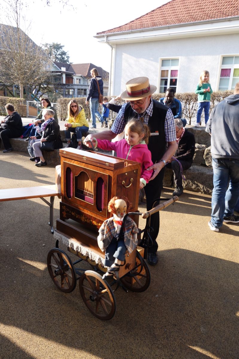 Das Wetter spielte wunderbar mit und zeigte sich von seiner schönsten Seite. Der Drehorgelmann trug zur guten Stimmung bei. Es herrschte ein reges, fröhliches Treiben und die Stände waren früher als erwartet leergekauft – ein wunderbares Erlebnis für die Schülerinnen, Schüler und das ganze Lehrerteam.