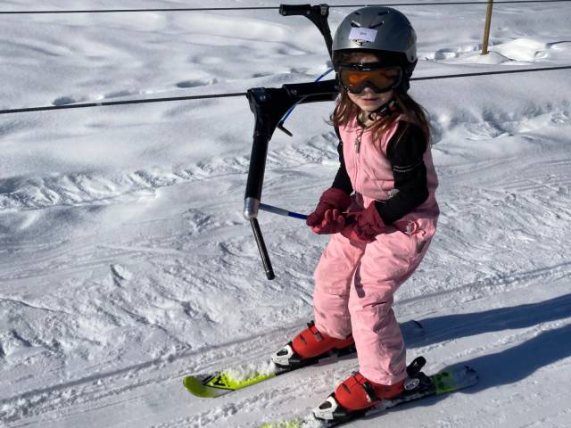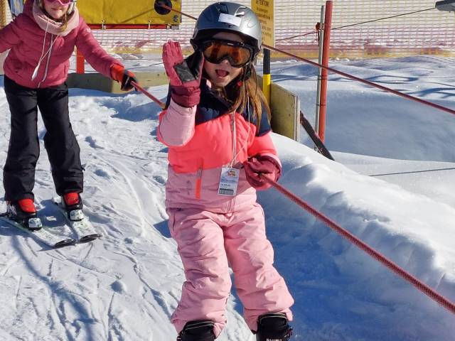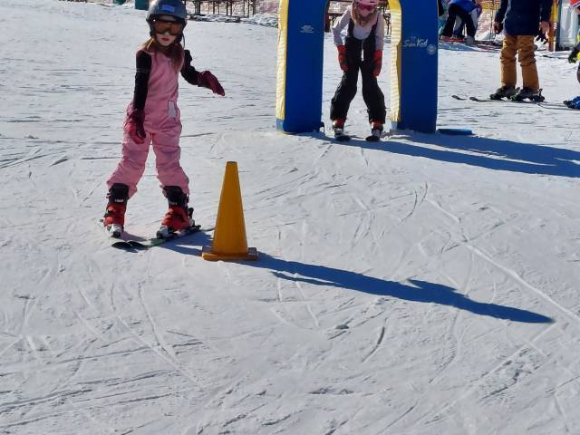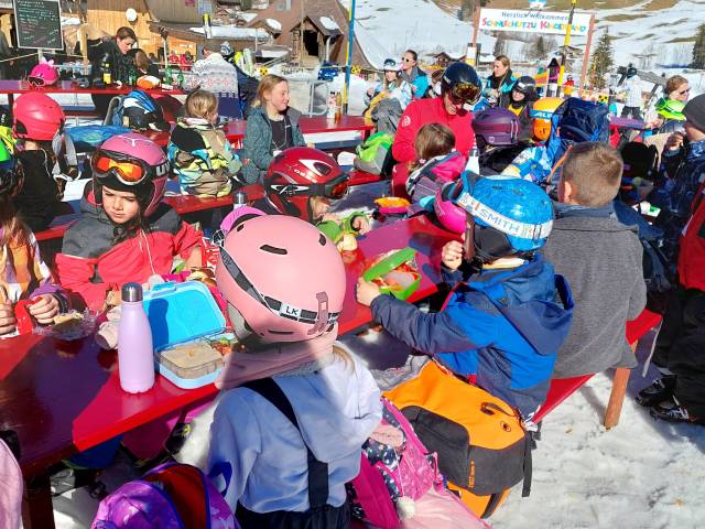 Bei wunderschönem Wetter durften die 1. Klässler mit ihren Gottis und Göttis aus der 4. Klasse die Skipisten und das Kinderland geniessen.
