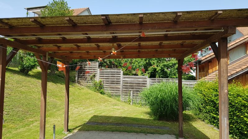 Bunt, farbig, lustig und gemütlich – so ist unser "Gschichtehüsli" geworden. Die drei Klassen (2b, 3. und 4.) haben mit viel Freude und Elan gearbeitet und das Gartenhaus umgestaltet.