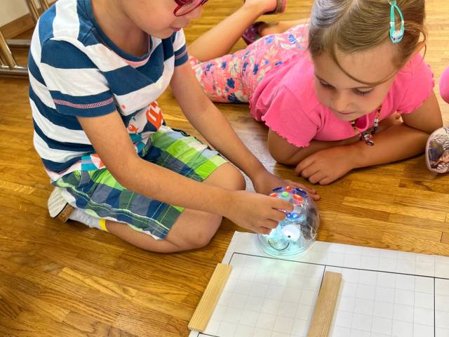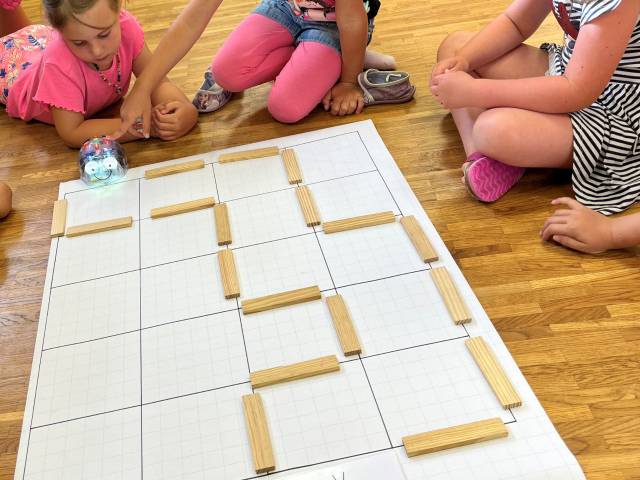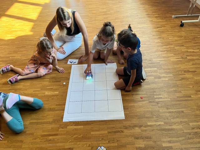 An drei Vormittagen wurde jeweils während einer Stunde ein Modul durchgeführt, in welchem mit und ohne Hilfe eines kleinen Roboters die Welt des Programmierens erklärt wurde.