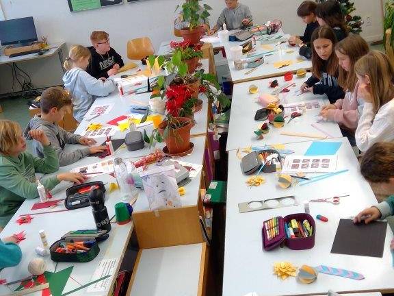 Thematisch wollte die Projektwoche auf die Adventszeit einstimmen. Gestartet wurde jeder Morgen gemeinsam im Singsaal, wo weihnächtliche Lieder gesungen und Geschichten vorgelesen wurden.