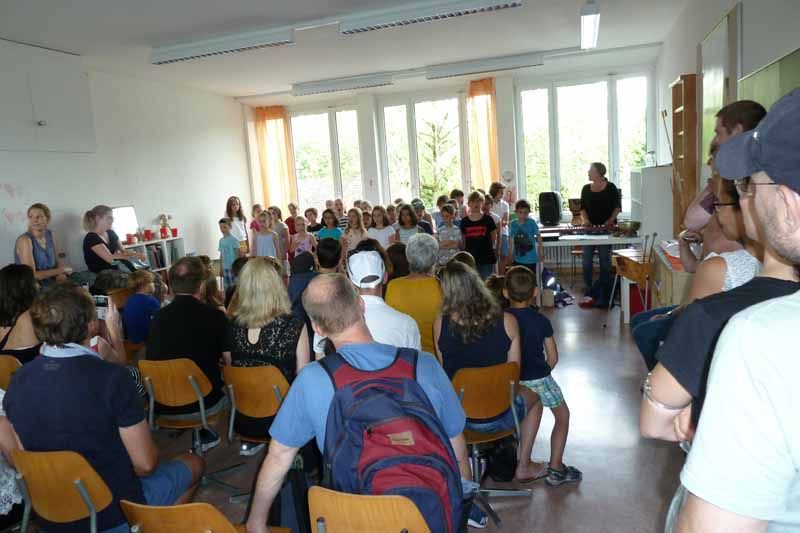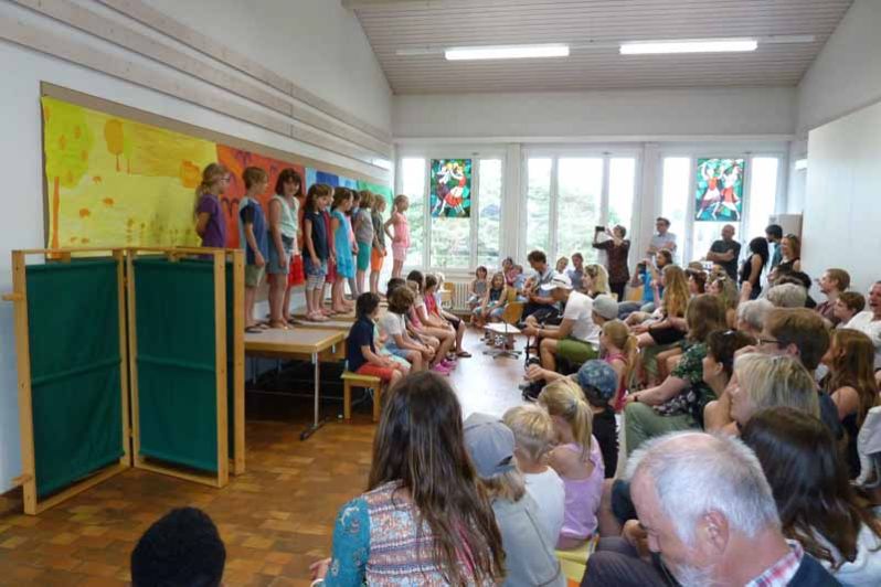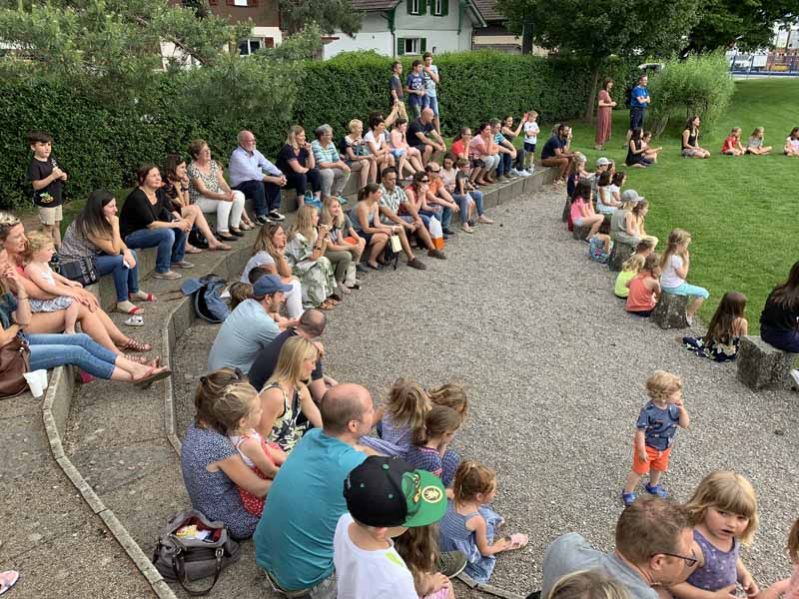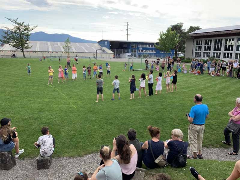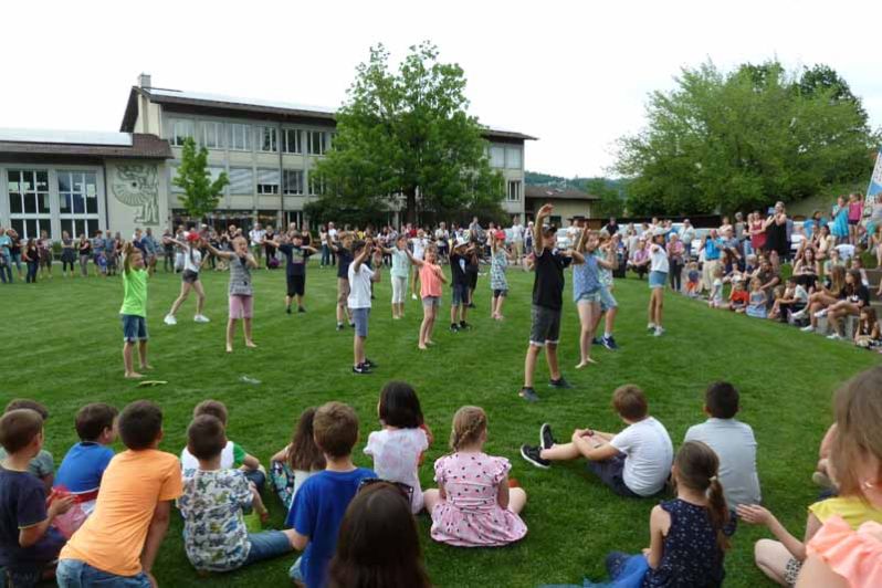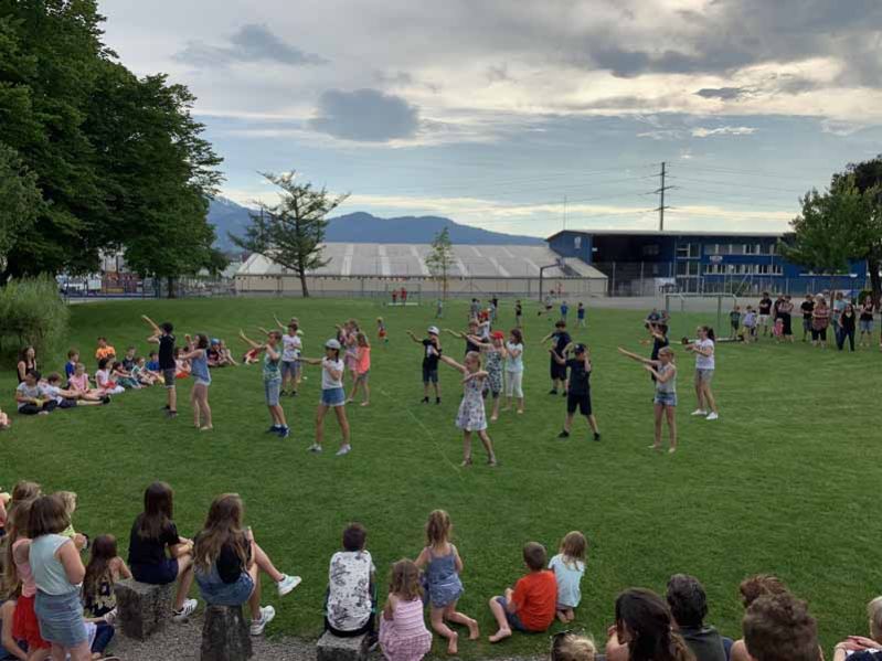 An verschiedenen Orten wurden den Besuchern diverse tolle musikalische Vorstellungen dargeboten. Zudem konnten die Gäste in jedem Schulzimmer und Kindergarten Einblicke in den Schulalltag gewinnen. Zwei fetzige Tanzeinlagen der 2. und 4. Klasse rundeten die Feier bei sommerlichem Wetter auf der Schulhausanlage ab.