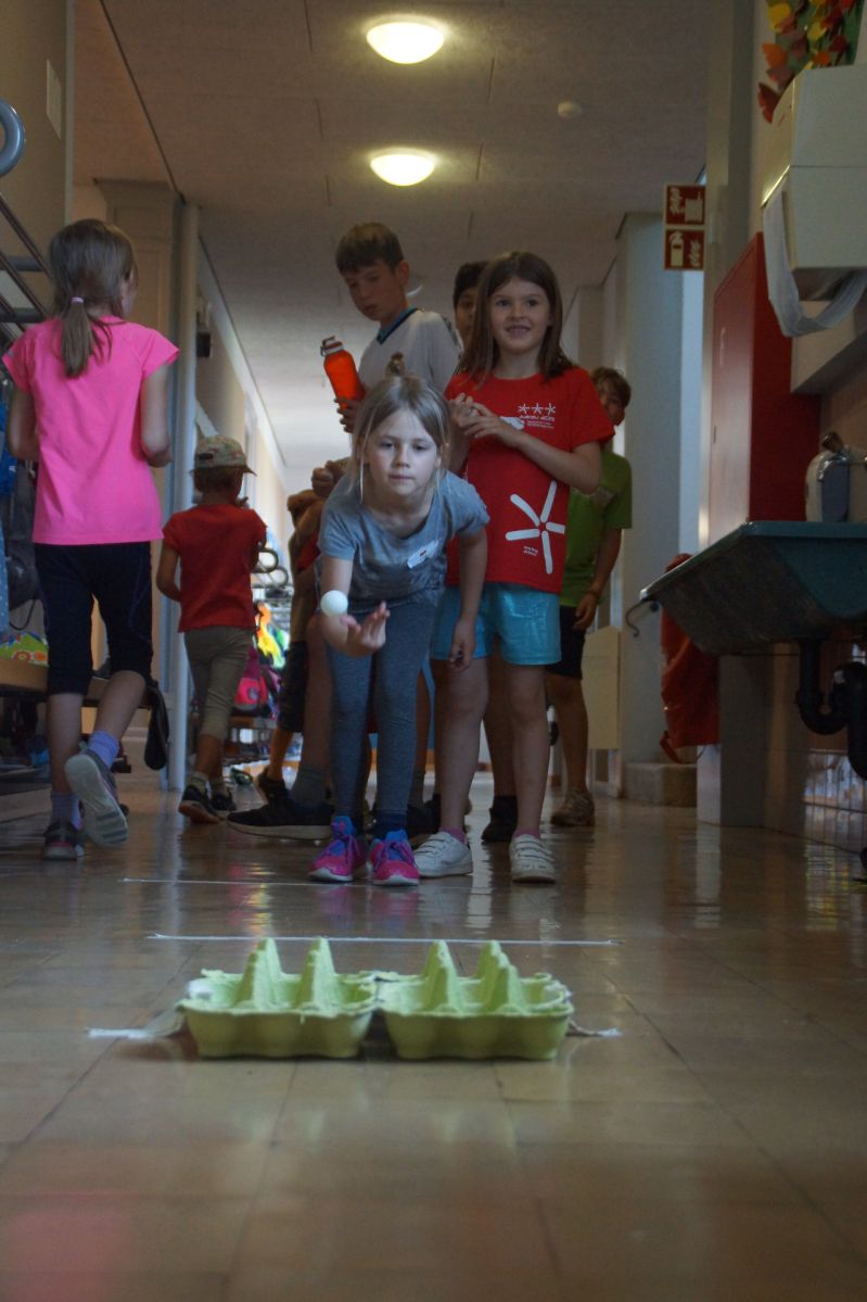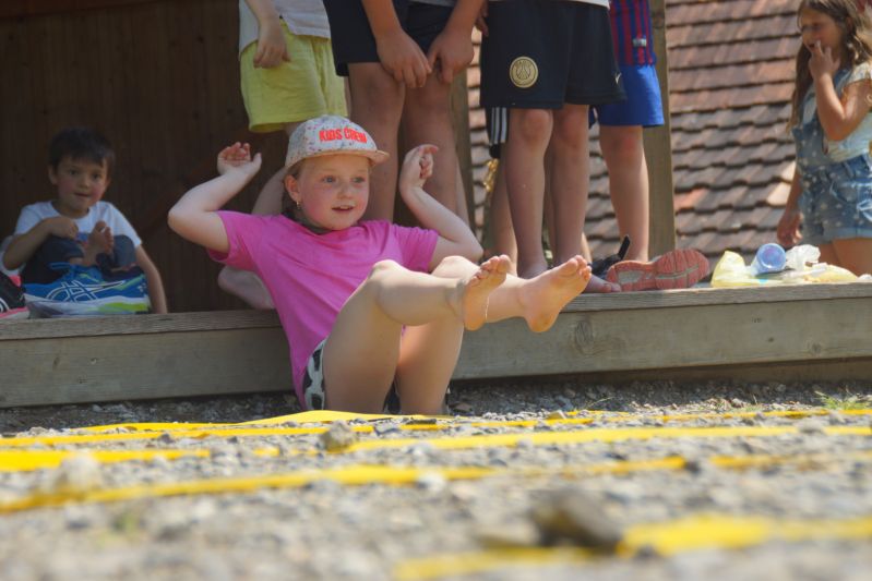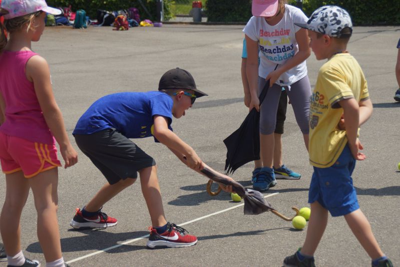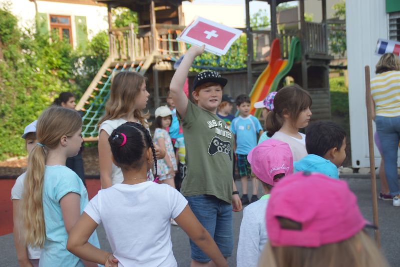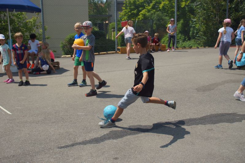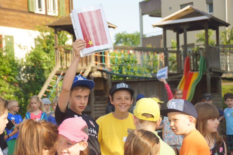 Zoe & Nicole, 3. Klasse: Wir waren in Ländergruppen und machten verschiedene Posten. Die 4.Klässlerinnen und 4.Klässler haben die Gruppen durch den Tag geleitet. Es war und heiss und wir hatten viel Durst. Es ging bis am Nachmittag – inklusive einer Mittagspause. Danach hatten wir die Rangverkündigung. Spanien hat gewonnen. Alle waren froh, dass sie sich ausruhen konnten, aber es hat allen viel Spass gemacht!