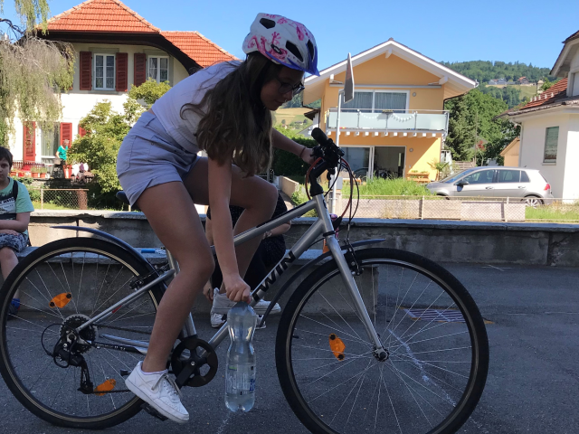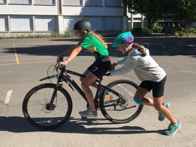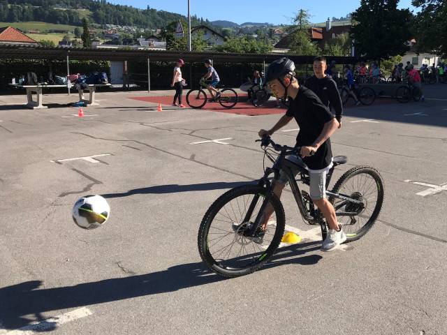 Dabei mussten die Schülerinnen und Schüler unter anderem mit dem Velo gemeinsam einen Ball transportieren, einen Slalom fahren, mit einem Ball auf ein Tor schiessen oder eine volle Flasche auf den Boden stellen können. Das gemeinsame Erlebnis stand dabei im Vordergrund.