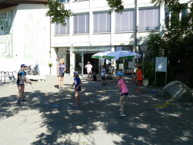 Im Juni konnten alle Schülerinnen und Schüler der 1. - 4. Klassen bei schönstem Wetter am Sporttag auf dem Areal des Schulhauses Sonnenfeld teilnehmen.