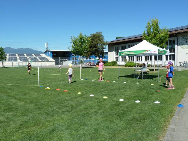 Mit der Unterstützung des UBS-Kids-Cup konnten sich die Kinder in den Disziplinen Laufen, Springen und Werfen messen. Zusätzlich boten die Posten Seilspringen, Jonglieren und Körperakrobatik Gelegenheit, sich spielerisch zu bewegen.