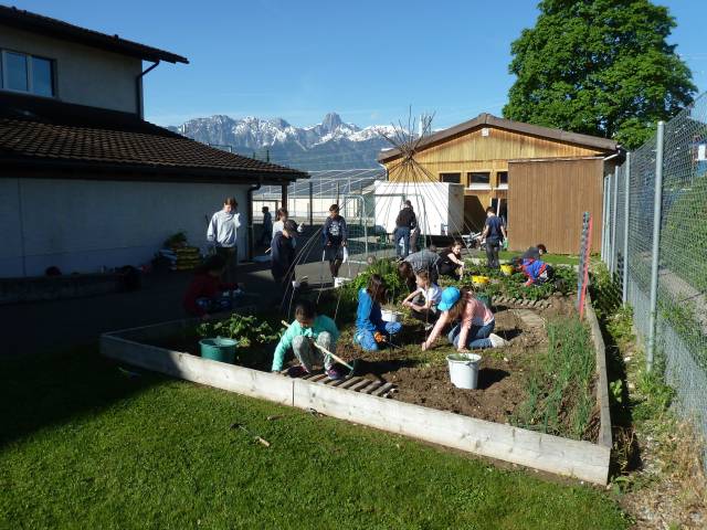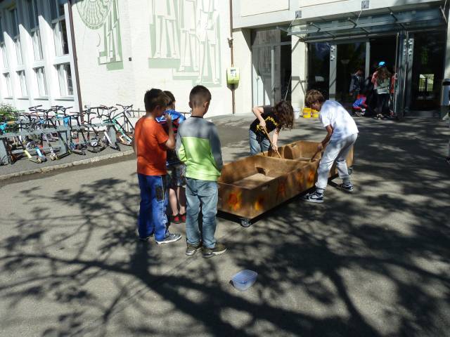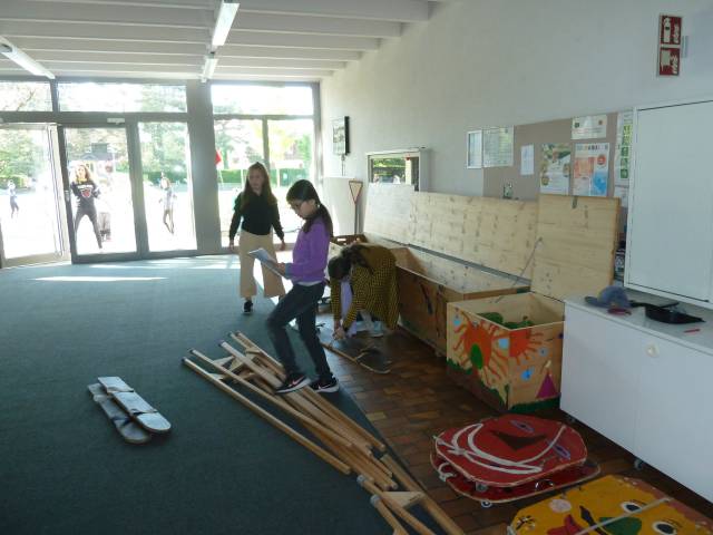 Am Freitag, den 28. Mai fand der diesjährige «Sunnetag» bei strahlendem Wetter statt. Ziel des Vormittags war es, das Schulareal gemeinsam zu pflegen und den Kindern zu vermitteln, dass wir zu den Sachen, die wir regelmässig brauchen, und zu den Orten, an denen wir uns tagtäglich aufhalten, Sorge tragen wollen. Am Morgen versammelten sich die Klassen mit ihren Lehrpersonen auf dem Pausenplatz. Es wurden Kisten ausgeräumt, Material ausgelegt, mit Wasser und Putzlappen geschrubbt und gefegt. Defekte Sachen wurden entsorgt oder geflickt.