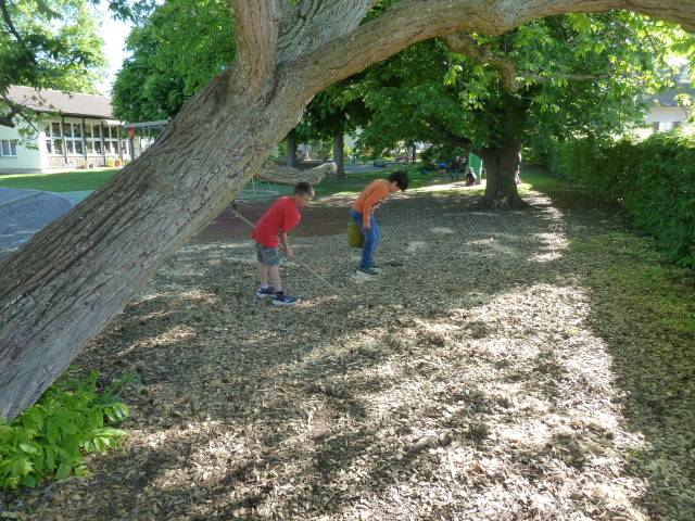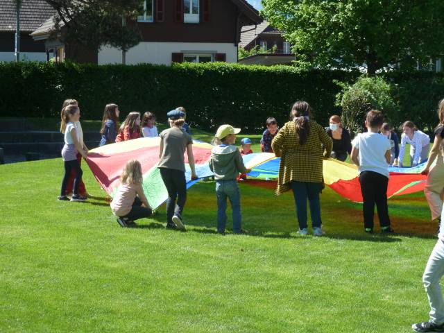 Nach unserem Frühlingsputz konnten die Kinder das saubere und ordentliche Schulareal beim Spielen geniessen. Die Kinder konnten aus einem breiten Angebot von Spielen wählen oder ihr ganz eigenes erfinden. Am Mittag gingen alle zufrieden und stolz auf die getane Arbeit nach Hause und wir hoffen, dass der "Sunnetag" auch langfristig dazu führt, dass wir den gemeinsamen Raum pflegen.